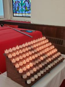 At church on All Saint’s Sunday, November 3, 2019, members of the congregation were invited to come forward to light a candle in honor and/or in memory of the saints in their lives; such as parents, grandparents, teachers, as well as those loved ones who have passed away.  Earlier in the service, the pastor explained that all Christians are saints. By lighting three candles, I specifically remembered my family, my in-laws family and a friend, Gerry Schueman.